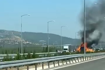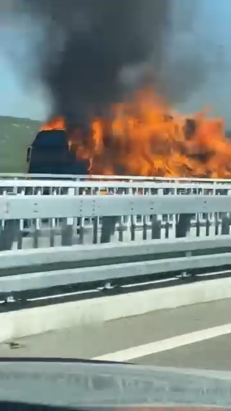 Bursa’nın Karacabey ilçesi, Karacabey-Bursa otobanında seyir halindeki dorse yüklü tır arıza sonrası bir anda alev aldı. Hızla büyüyen alevler dorseye sıçradı. Alevler kısa sürede büyüdü. Alev topuna dönen aracı gören çevredekiler hemen 112 Ekiplerine bilgi verdi. İtfaiye ekiplerince yangın söndürülürken, tır kullanılamaz hale geldi. Olayda can kaybı veya yaralanma meydana gelmedi.