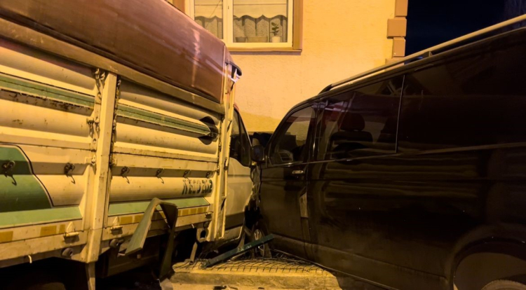 Çarpmanın ve lodosun şiddetiyle kamyonet ile minibüs, 3. Erikli Sokak üzerinde bulunan 4 katlı apartmanın korkuluklarını aşarak giriş katındaki dairenin salonuna girdi.