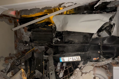 Bursa'da şiddetli lodosa yenik düşen kamyonet, park halindeki otomobile çarptıktan sonra giriş katındaki dairenin salonuna girdi. Trajikomik kazada yaralanan olmazken, araçlarda ve evde maddi hasar oluştu.