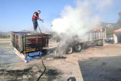 Bilecik’in Osmaneli ilçesinde sabah saatlerinde meydana gelen olayda, bir anda alev alan tırın dorsesi itfaiye ekipleri tarafından söndürüldü.