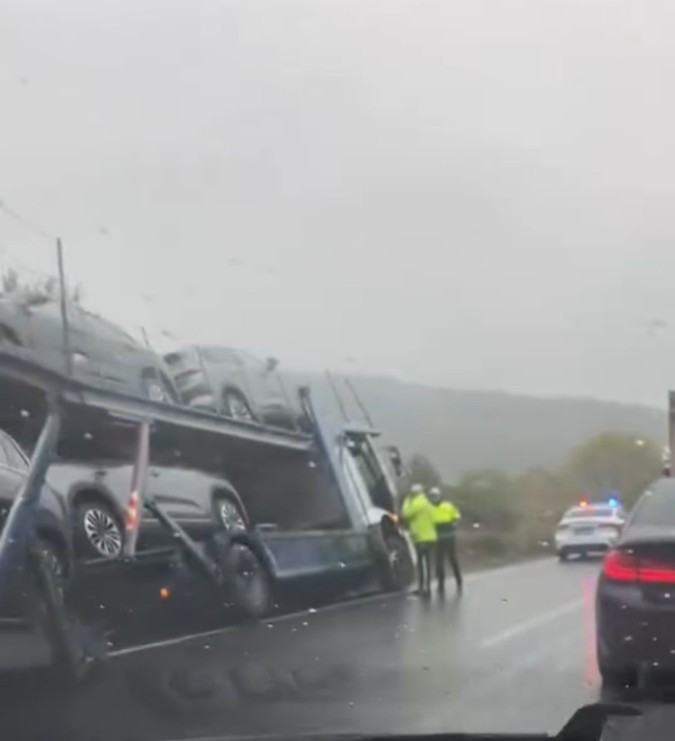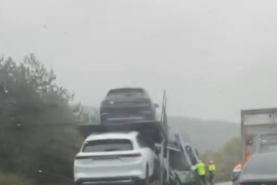 Bursa’nın Kestel ilçesi Ümitalan Rampası mevkiinde TOGG yüklü tır seyir halindeyken yağışlı havanın etkisiyle kontrolden çıktı. Savrulan araç yol kenarında mahsur kalırken, tır sürücüsü 112 Ekiplerinden yardım istedi. İhbar üzerine olay yerine trafik ekipleri sevk edilirken, araçlar ise çekici yardımı ile kurtarıldı. Şans eseri devrilmeyen tırdaki araçlar ise hasar görmeden tekrar yola koyuldu.