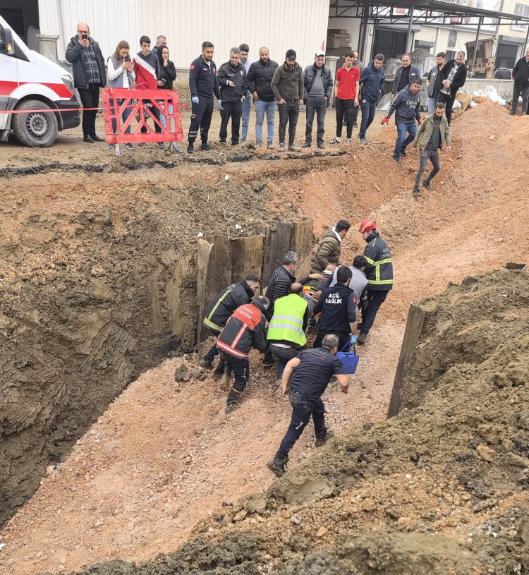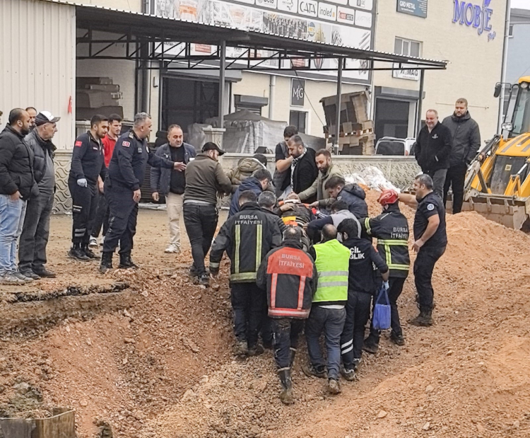 Bursa'nın İnegöl ilçesinde altyapı çalışmaları sırasında toprak altında kalan işçiyi kurtarmak için itfaiye erleri adeta zamanla yarıştı. Ağır yaralanan işçiyi kurtarma anı kameralara yansıdı.