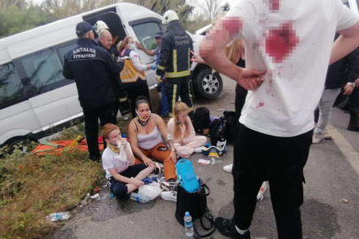 Turistleri taşıyan tur minibüsü şarampole yuvarlandı: 13 yaralı