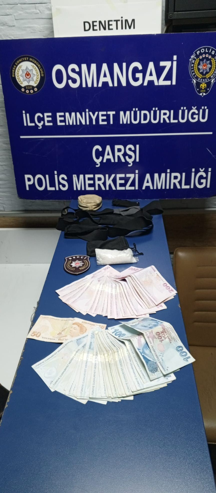 Yapılan üst aramasında şahsın göbek bölgesinde satışa hazır halde toplam 47 gram metamfetamin ve uyuşturucu ticaretinden olduğu düşünülen 7 bin 350 lira ele geçirildi. Bekçiler tarafından gözaltına alınan Mehmet G. görevlilere "Yakmayın beni" diye yalvardı. Görevliler gözaltına aldıkları şahsı Çarşı Polis Merkezi'ne getirdi.