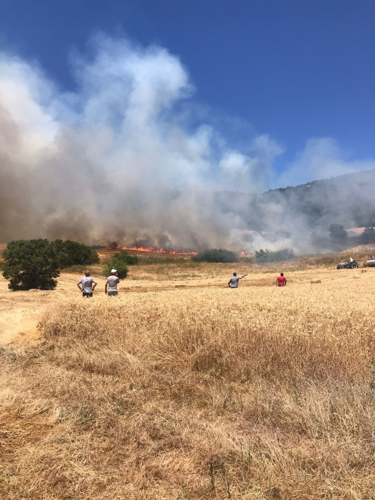 Bursa'da Yenişehir ilçesi Süleymaniye ile Kavaklı mahalleleri arasında buğday tarlasında başlayan yangın ormana sıçradı.