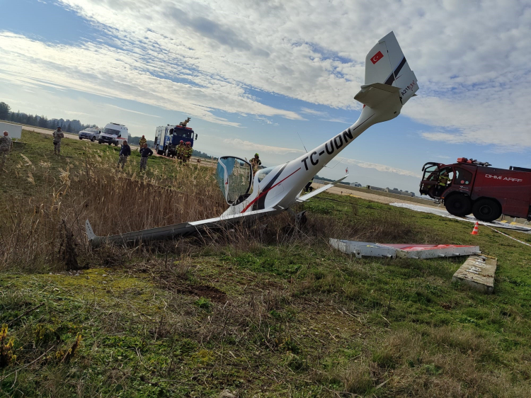 Olay, saat 12.45 sıralarında Yenişehir Havaalanında meydana geldi. Özel uçuş okuluna ait eğitim uçağı, pisti terk ettiği esnada kaza kırıma uğradı.