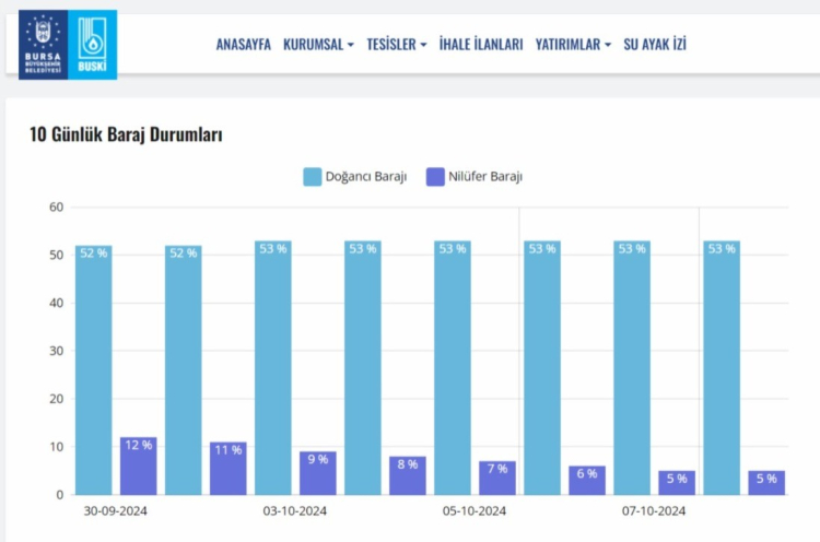 İki barajın ortalama doluluk oranı yüzde 29'a kadar düşerken geçen yıl aynı günlerde Nilüfer Barajı'nda doluluk oranı yüzde 47, Doğancı Barajı'nın doluluk oranı ise yüzde 53'leri gösteriyordu.