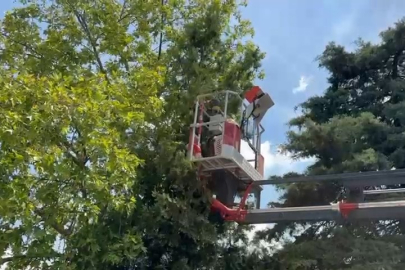 Çevredeki vatandaşların ihbarı üzerine bölgeye itfaiye ekipleri sevk edildi. Ağaçta mahsur kalan kediler ekiplerin 5 dakika süren çalışmalarıyla kurtarıldı.