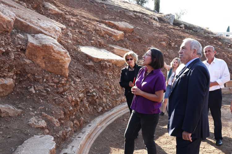 Prof. Dr. Derya Şahin ise uzun süredir Nekropol Alanı, tiyatro ve karaya 1 kilometre mesafedeki Kız Ada’da kazı çalışmalarını sürdürdüklerini belirtti. Adada su seviyesinin kısmen çekilmesiyle Ekim ayından itibaren çalışabildiklerini ifade eden Şahin, Eylül ayı sonuna kadar tiyatro alanındaki çalışmalara aktif şekilde devam ettiklerini açıkladı. Kazıları tamamlamak için yoğun bir çaba sarf ettiklerini vurgulayan Şahin, çalışmaların tamamlanmasının ardından bu alanların ziyarete açılmasını amaçladıklarını söyledi. Turizm ve Kültür Bakanlığı’nın önemli destekleri olduğunu belirten Şahin, Nilüfer Belediyesi’ne de katkılarından dolayı teşekkür etti.