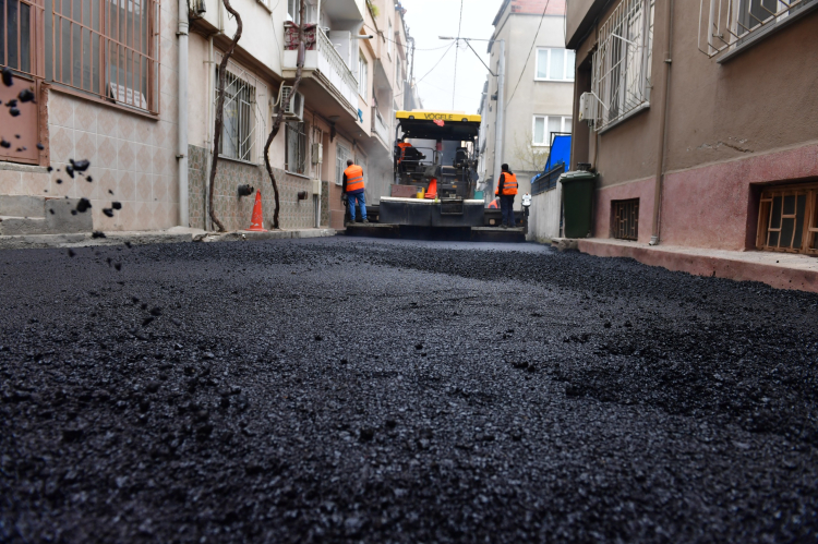 Osmangazi Belediyesi ekipleri, aynı mahallede bulunan 19. Mutlu Sokak’ta da asfalt