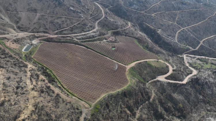Yükseltilerin arasında, binlerce dekar griye çalan alanın ortasında göz kamaştırıcı bir manzara, bir umut isyanı yükseliyor. Yangının pençesinden sahiplerinin bakımları sayesinden kurtulan, dağların kuytusunda saklı 50 dönümlük şeftali bahçeleri, baharın gelişiyle pembe çiçeklere durdu ve büyüleyici bir görsel şölen sundu.