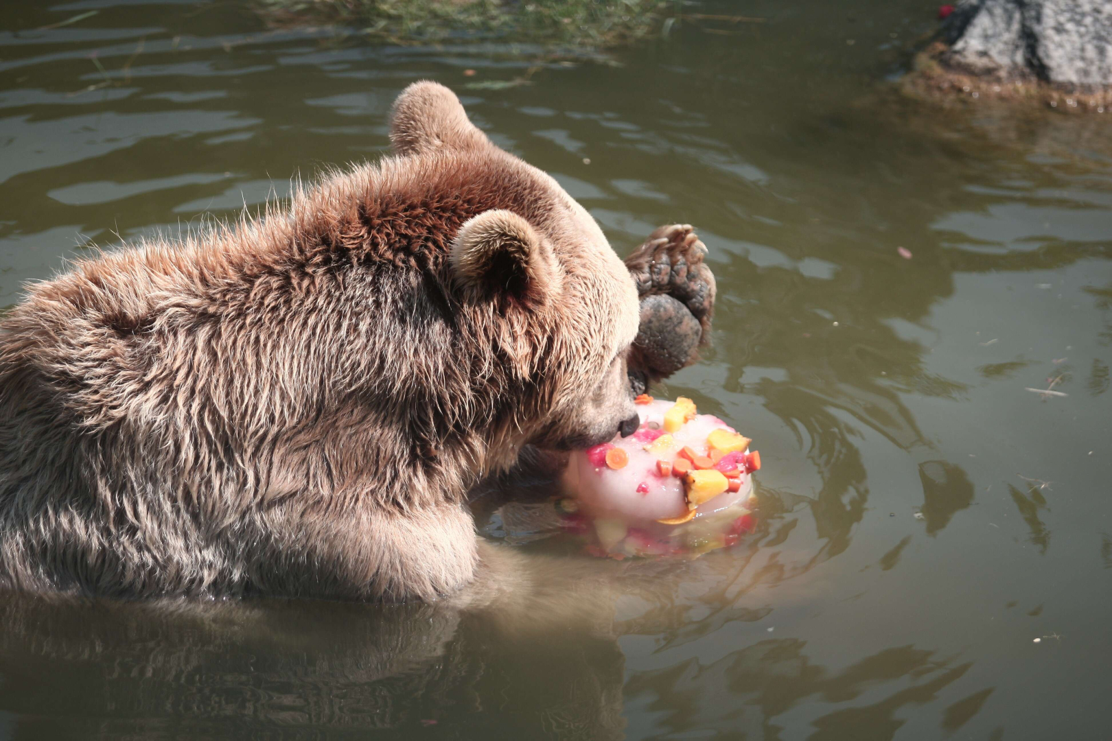 Bursa Büyükşehir Belediyesi Hayvanat Bahçesi’nde hayvanlar Afrika sıcaklarında buzlu meyve ve sebzelerle serinliyor.