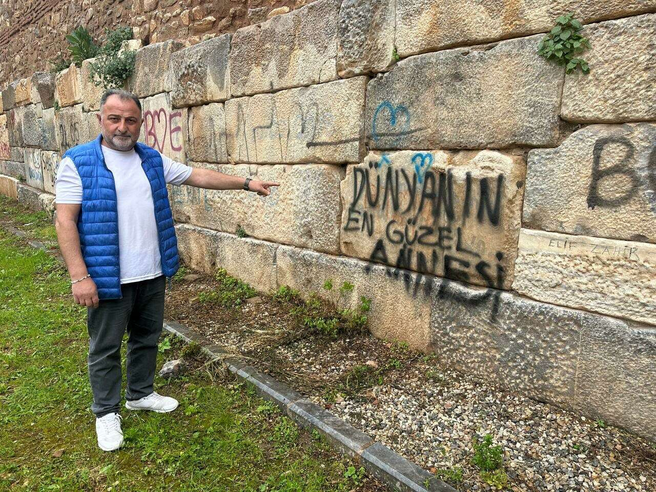 İznik sahilinde turizm işletmecisi Ali Karaman, “Ben sahilde turizm işletmecisiyim. Yazılan yazı aslında güzel bir yazı ama yeri değil. Burası tarihi bir yer. İznik'e yüzlerce binlerce turist geliyor. Tarihi surlarda bu tür yazılar yazılması çok yanlış” dedi.