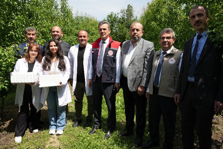 Tarımsal ilaç kullanmanın faydalarının yanında birçok zararı da beraberinde getirdiğini söyleyen Gürsu Ziraat Odası Başkanı Kamil Dönmez, “Buradaki amacımız tarım ilacı kullanımını azaltmak. Biz üretici olarak şu an kimyasal ilaç kullanmak zorundayız. Tarım ilacının insan sağlığına ve çevresel zararları var. 2030 yılına kadar tüm dünyada tarımsal ilaçların kullanımının azaltılması hedefleniyor. İlk kez Gürsu’da, armut üretiminde yoğun ilaç kullanımı yapıldığı için akademisyenler iş birliği ile kontrollü entegre mücadele çerçevesinde faydalı böcek salımı gerçekleştiriyoruz. Hiç ilaç kullanılmayacak demiyoruz, kullanılan ilacı yarıya düşürmek ve tekrar sayısını azaltmak gibi bir amacımız var. Bu yıl ve 2025 üretim sezonunun sonuna kadar denenecek. Bu deneme sonuçlarında başarılı olursak hem çevreye hem de insan sağlığına faydamız olacak. Kimyasal ilaçları yurt dışından dövizle alıyorduk, böcek üretimi yerli üretim, milli servet cebimizde kalacak. Ayrıca kullanımı rahat, sağlık yönünden faydalı, inşallah başarılı oluruz ve ilaç sayısını azaltırız. Türkiye su zengini bir ülke değil, her ilaç atımında da binlerce ton su da israf ediliyor. Bu yöntemle bu israfın da önüne geçmiş oluyoruz. Aslında bu böcekler doğada var. Çiftçiliğe ilk başladığımızda 4 kez ilaçla sezonu bitirirdik. Şimdilerde tekrar sayısı 20’le çıktı. Bunun nedeni bizim kullandığımız kimyasallar doğada olan faydalı böcekleri öldürdü, dengeyi bozduk. Aslında doğada olan böcekleri tekrar doğaya salarak ve çoğalmalarını sağlayarak zararlı böceklerle mücadele etmesini sağlıyoruz. Bizim en çok zarar gördüğümüz armut psillidi, iç kurdu ve yaprak biti. Şu anda saldığımız böcekler de bunlara karşı etkili olacak” şeklinde konuştu.
