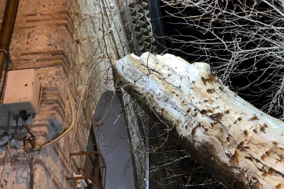 600 yıllık İshakpaşa Camii'nin girişinde bulunan asırlık çınar ağacı kökünden çıkarak devrildi. Caminin duvarına dayanan ağacın gövdesinden parçalar yere düştü.