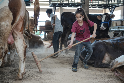 Babasına yardım için 1350 kilometre mesafeden Bursa'ya gelen Ecrin Özmen, "Oyun oynayacağıma babama yardım ederim. Altını temizliyoruz, tımar yapıyoruz ve saman dolduruyoruz. Burada oyun oynamıyorum sadece yardım ediyorum. Babamlar Muş'tan Bursa'ya yola çıkarken bende tırın arkasına atladım o şekilde geldim" diye konuştu.