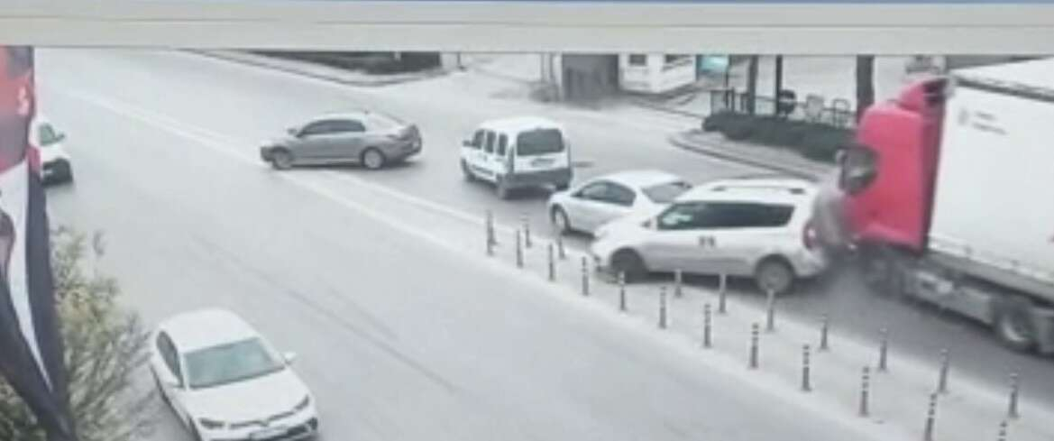 Bursa’da bir otomobil sürücüsü anayolda yavaşlayıp dönüş yapmaya çalıştı. Otomobilin durduğunu farkeden diğer araç sürücüleri frene basınca arkadan gelen tır duramayıp önündeki otomobillere çarptı. Kazaya sebep olan araç çizik bile almazken, 4 aracın karıştığı kaza anı ise güvenlik kamerasına saniye saniye yansıdı