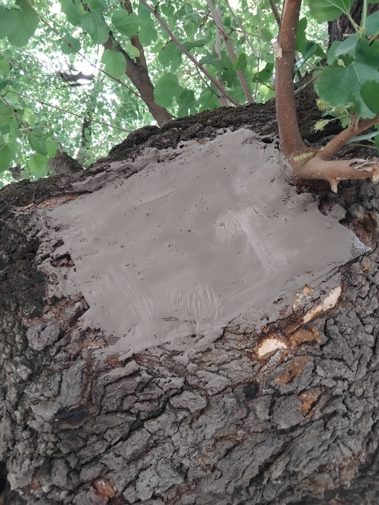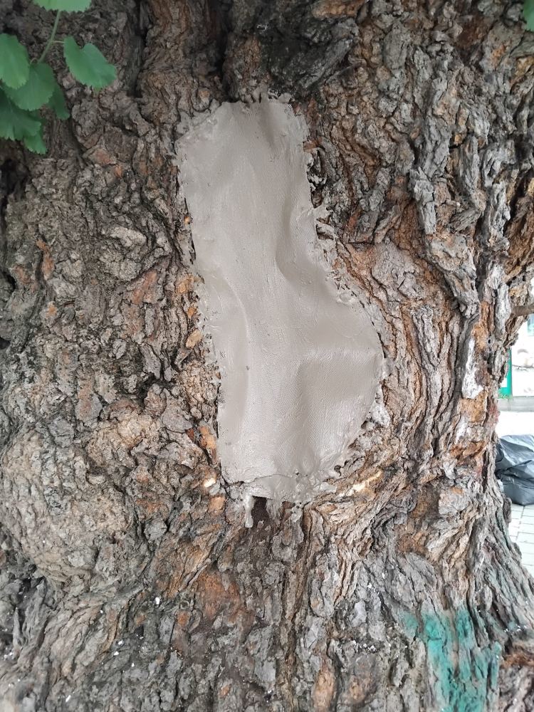 kaldırılıp canlı dokuya ulaşmak için kazıma işlemi yapıldı. Ağaç yüzeyindeki açık