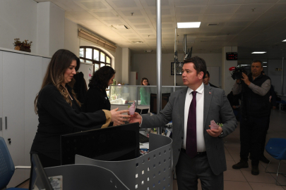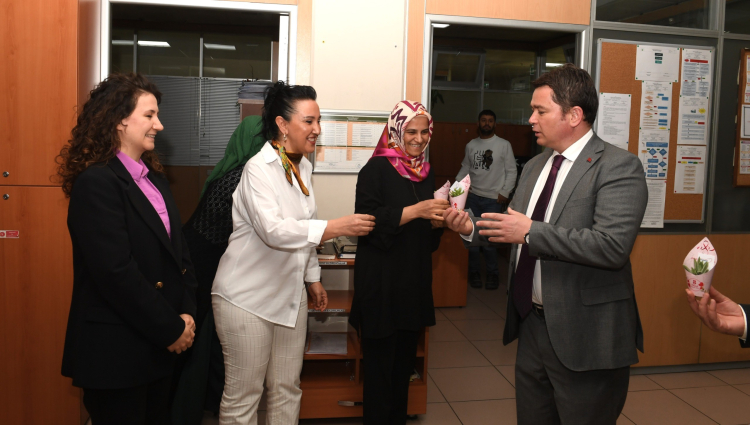 Osmangazi Belediye Başkanı Erkan Aydın, kadın personelin 8 Mart Dünya Kadınlar Günü'nü kutlayarak, çiçek hediye etti.
