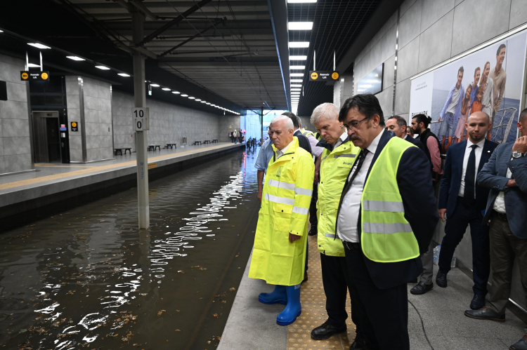 Bursa'da etkili olan sağanak yağışın hayatı olumsuz etkilemesi üzerine şehir dışındaki programlarını iptal ederek hızlıca kente dönen Bursa Büyükşehir Belediye Başkanı Mustafa Bozbey, Odunluk İstasyonu'ndaki su tahliye çalışmalarını yerinde inceledi.