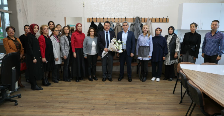 Ziyaretlerin sonunda Başkan Aydın, öğretmenlere 24 Kasım Öğretmenler Günü münasebetiyle çiçek ve çeşitli hediyeler takdim etti.