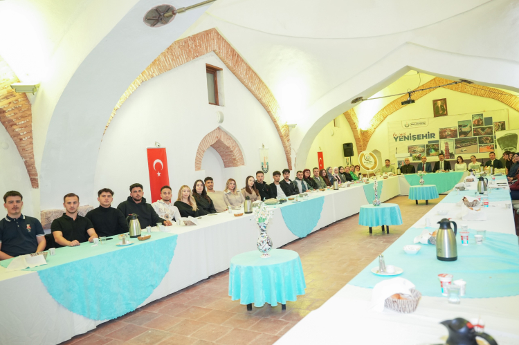 Yenişehir Belediye Başkanı Ercan Özel, Bursa Uludağ Üniversitesi (BUÜ) İbrahim Orhan Meslek Yüksekokulu Öğrenci Topluluğu ile Sinanpaşa Külliyesi’nin tarihi atmosferinde düzenlenen iftar yemeğinde buluştu. Samimi bir ortamda gerçekleşen programa Okul Müdürü Prof. Dr. Nazmi İzli, Kent Konseyi Başkanı Hakan Erdoğan, akademisyenler ve çok sayıda öğrenci katıldı.