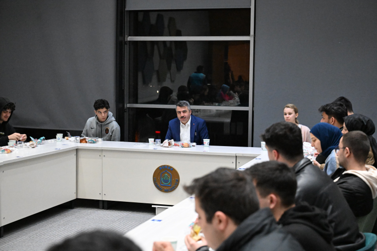 Yıldırım Belediye Başkanı Oktay Yılmaz, Mümine Şeremet Uyumayan Kütüphanesi’nde düzenlenen sahurda gençlerle bir araya geldi.