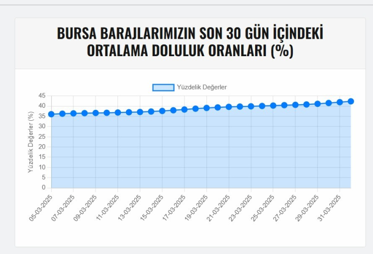 Son yağışlar ile birlikte Mart ayında su seviyesi yaklaşık yüzde 6 oranında yükselse de yetkililer, vatandaşlara suların tasarruflu kullanılması konusunda uyarılarda bulunuyor.