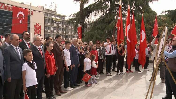 Bursa’da 23 Nisan Ulusal Egemenlik ve Çocuk Bayramı dolayısıyla İl Milli Eğitim Müdürlüğü tarafından kent merkezinde tören düzenlendi. Heykel'deki Atatürk Anıtı önündeki törende, saygı duruşu ve İstiklal Marşı'nın okunmasının ardından Bursa İl Milli Eğitim Müdürü Ahmet Alireisoğlu tarafından Atatürk anıtına çelenk bırakıldı. Çelenk sunumunun ardından tören, saygı duruşu ve İstiklal Marşı’nın okunmasıyla sona erdi.
