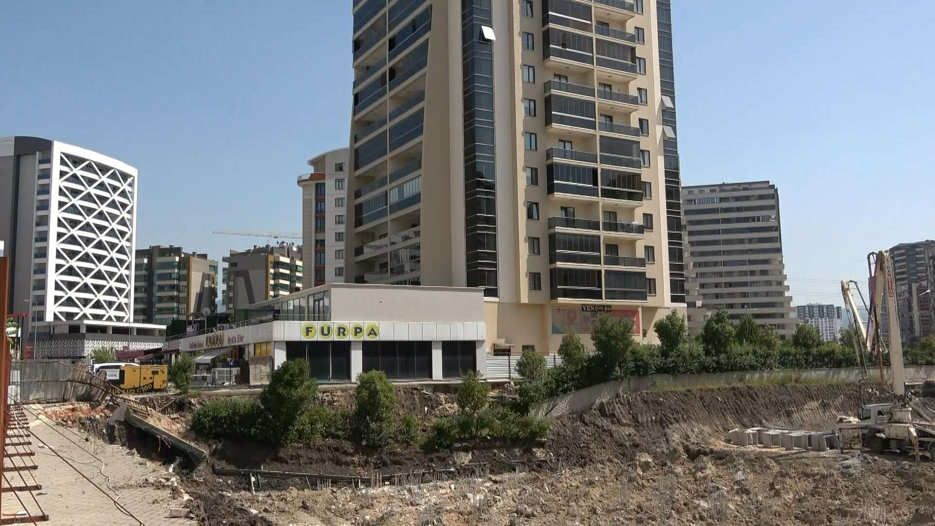 Bursa’da yeni yapılacak bina için temel atma esnasında yan tarafında bulunan başka bir siteye ait 16 katlı binanın bahçe duvarı çöktü. O anlar kameraya anbean yansıdı.