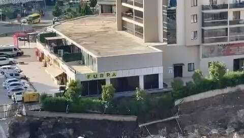 Bursa’da 16 katlı binanın bahçe duvarı böyle çöktü