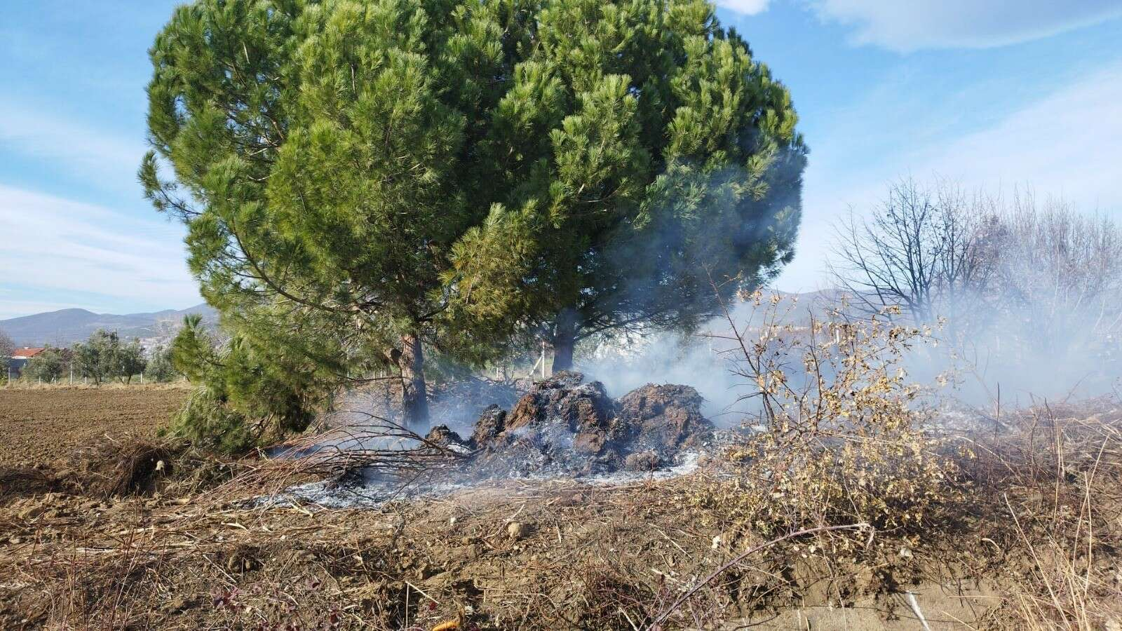 Bursa'nın Orhangazi ilçesinde daha önce kesimi yapan ağaçlar tutuştu.