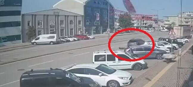 Bursa’da cadde üzerinde geri manevra yapan otomobil sürücüsü arkasından gelen yayı fark etmeyip çarptı. Savrulan yaya yaralanırken, aracın altında ezilmekten son anda kurtuldu. O anlar güvenlik kamerasına anbean yansıdı.