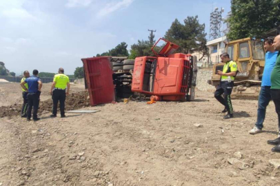 Bursa'da hafriyat kamyonu devrildi: 1 yaralı