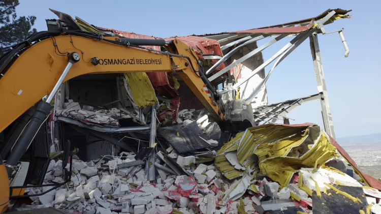 Osmangazi Belediyesi, Uludağ eteklerinde yer alan Gökçeören Mahallesi'nde imara aykırı şekilde inşa edildiği belirlenen lüks villayı yıktı.