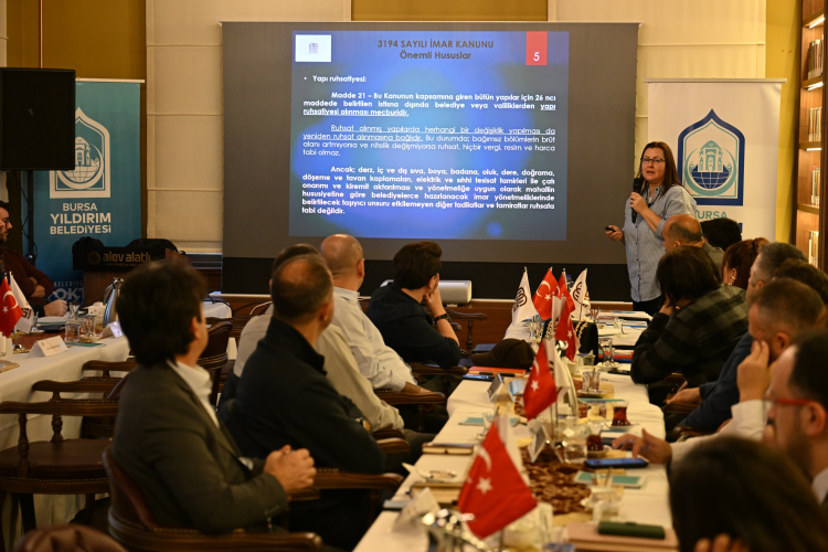 Bursa Belediyeler Birliği’nin merkezi olan Alev Alatlı Şehir Düşünce ve Sanat Merkezi’nde yapılan toplantıya Bursa Belediyeler Birliği ve Yıldırım Belediye Başkanı Oktay Yılmaz ile üye belediyelerin yapı kontrol müdürleri ve ilgili başkan yardımcıları katıldı. İstişare toplantısında şehir planlama ve imar uygulamaları konusu detaylı bir şekilde ele alındı. Kurum temsilcileri, ilçelerdeki mevcut durum hakkında bilgi verirken, karşılaşılan sorunlar ve çözüm önerileri masaya yatırıldı.