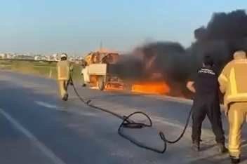 Olay, Karacabey-Bursa Yolu üzerinde meydana geldi. Edinilen bilgiye göre, seyir halindeki kamyonetten bir anda dumanlar yükselmeye başladı. Emniyet şeridine çekilen kamyonet, bir süre sonra alevlere teslim oldu. Çevredekilerin ihbarı üzerine olay yerine polis ve itfaiye ekibi sevk edildi. İtfaiye ekipleri yanan kamyoneti söndürdü. Yangında can kaybı meydana gelmezken, kamyonet kullanılamaz hale geldi.
