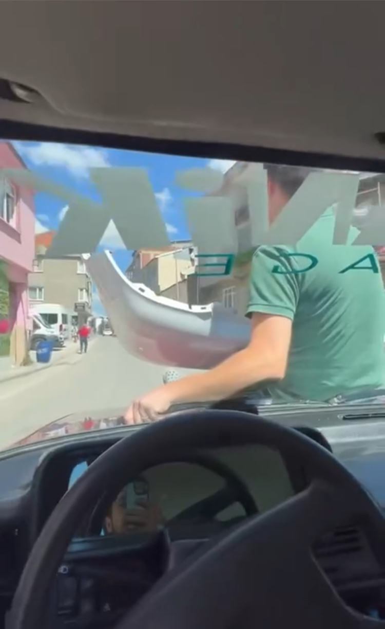 Merkez Osmangazi ilçesinde bir kişi elinde tampon ile otomobilin kaput kısmında oturdu. Bir süre sonra hareket eden otomobilin kaputunda giden kişiyi gören vatandaşlar gördüklerine inanamadı. Tehlikeli şekilde giden kişi daha sonra kaputtan inerken o anlar sürücü tarafından kaydedildi.