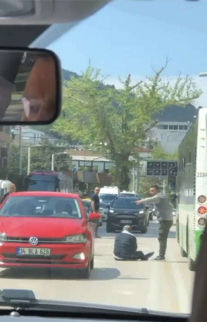 Olay, merkez Osmangazi ilçesi Altıparmak Caddesi üzerinde meydana geldi. Edinilen bilgiye göre, iki sürücü arasında yol verme meselesi yüzünden tartışma çıktı. Tartışma kısa sürede büyürken sürücüler birbirlerine vurmaya başladı. Çevredeki vatandaşların araya girmesiyle kavga yatıştırıldı. Sürücülerden biri aracına binerek bölgeden uzaklaştığı sırada kavga ettiği sürücüyü az daha eziyordu. Yere düşen sürücü hafif yaralanırken o anlar kameralara saniye saniye yansıdı.