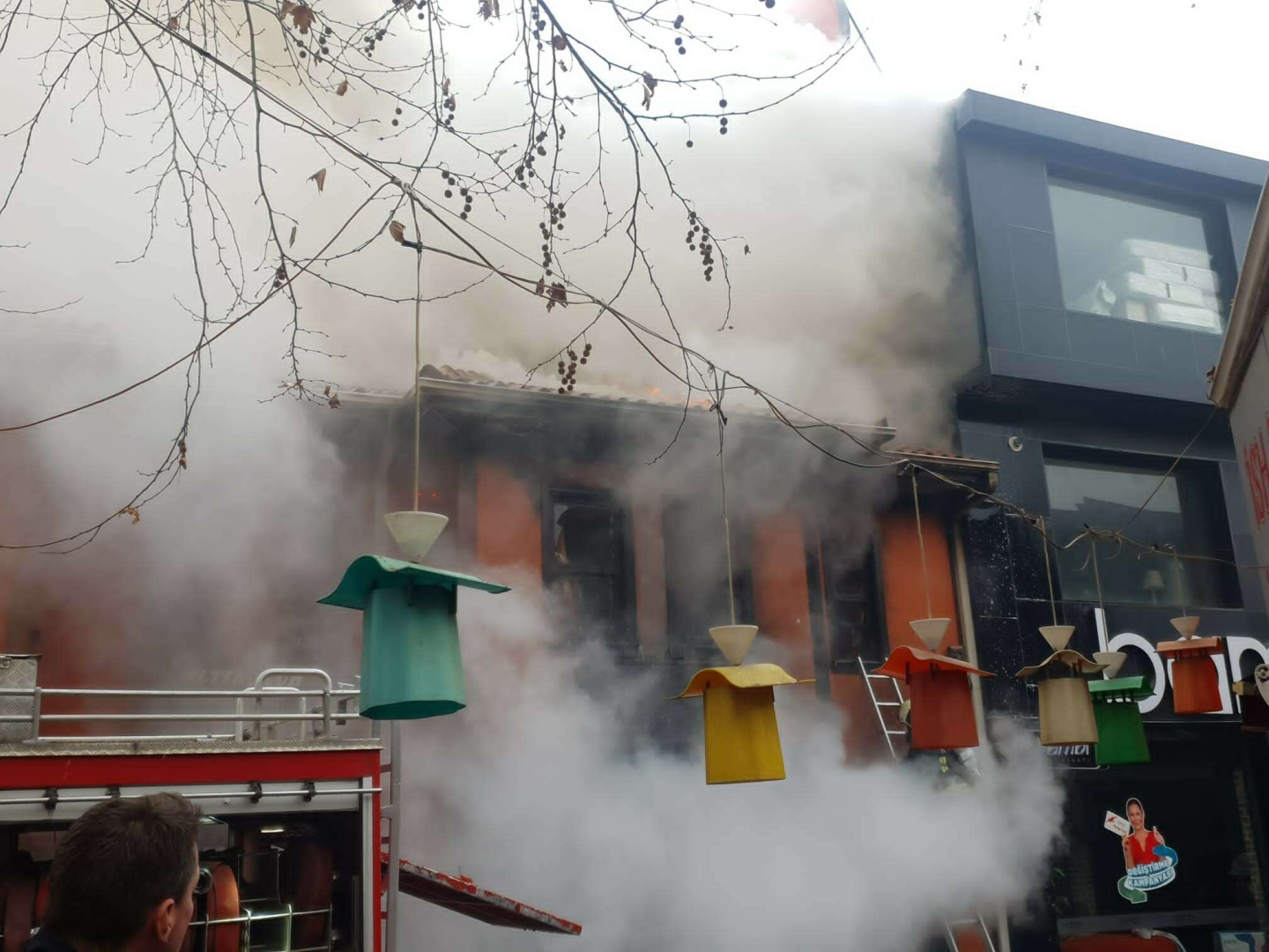 Bursa'nın İnegöl ilçesi Cuma Mahallesi tarihi İshakpaşa Camii yanındaki dükkanlardan birinde yangın çıktı.