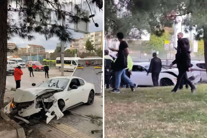 Bursa'da sürücüsünün kontrolünden çıkan milyonluk lüks otomobil, ağaca çarparak pert oldu.