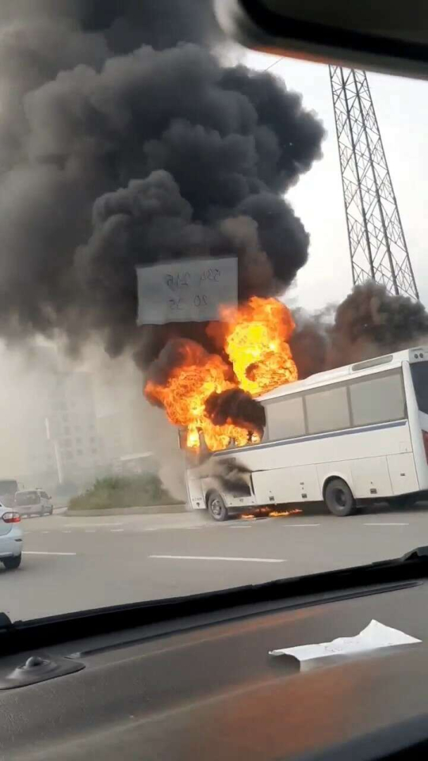 Edinilen bilgiye göre, seyir halindeki servis midibüsü bir anda alev almaya başladı. Aracı hemen sağa çeken şoför yolucuları tahliye etti. Kısa sürede büyüyen alevler otobüsün etrafını hızla sararken, durum itfaiye ekiplerine bildirildi. İhbar üzerine gelen itfaiyeciler yangına hızla müdahale etti. Kontrol altına alınan yangında can kaybı yaşanmazken, araç kullanılamaz hale geldi. Kentin birçok noktasından gözüken dumanlar cep telefonu kamerasıyla kaydedildi.