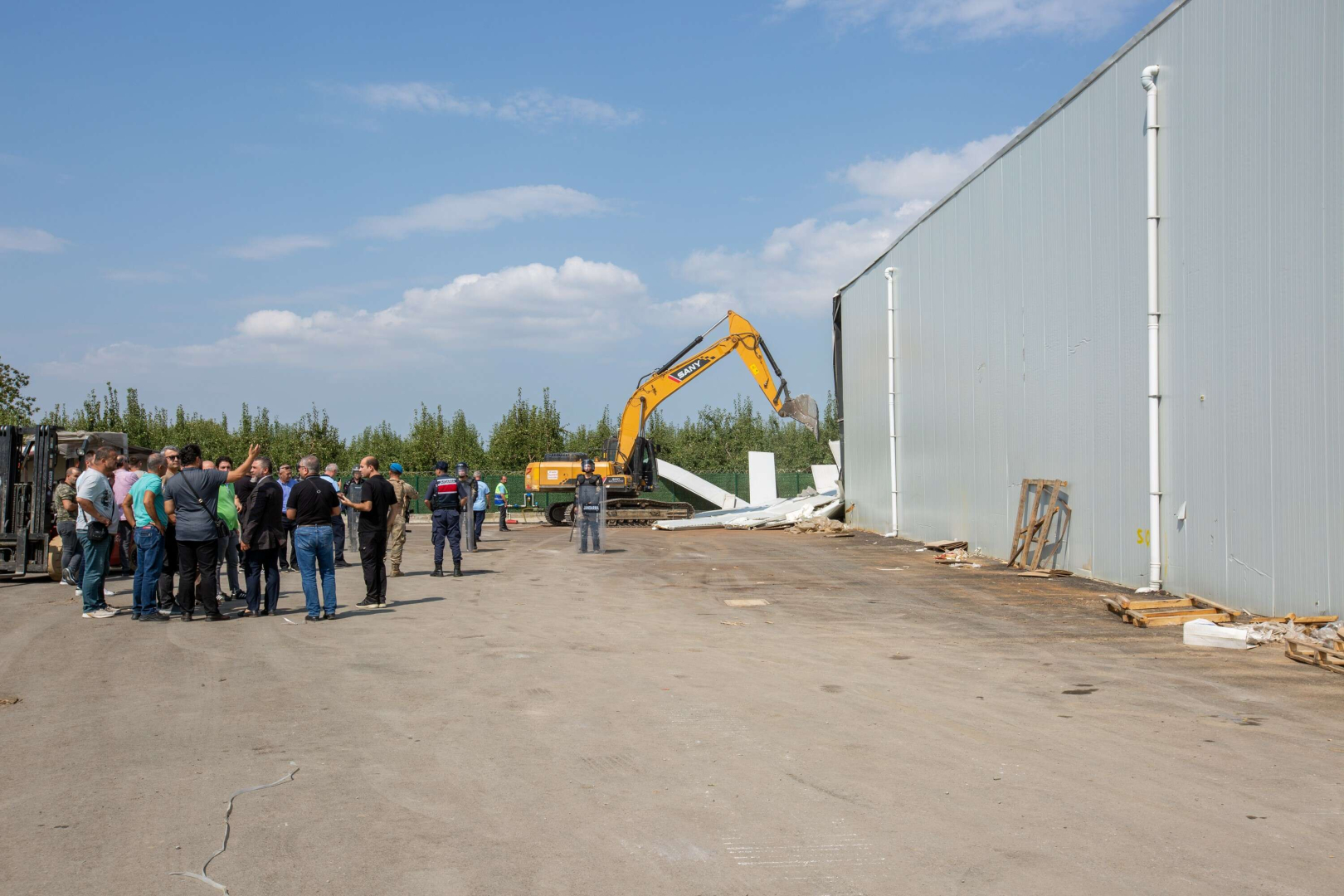 Bursa’yı depreme karşı dirençli kent haline getirmek için yoğun mesai harcayan Büyükşehir Belediyesi, diğer taraftan kaçak yapılaşmayla etkili bir mücadele başlattı. Yıldırım ilçesi sınırlarında nitelikli tarım arazileri üzerine kaçak olarak yapıldığı tespit edilen fabrika binalarının yıkımına başlandı.