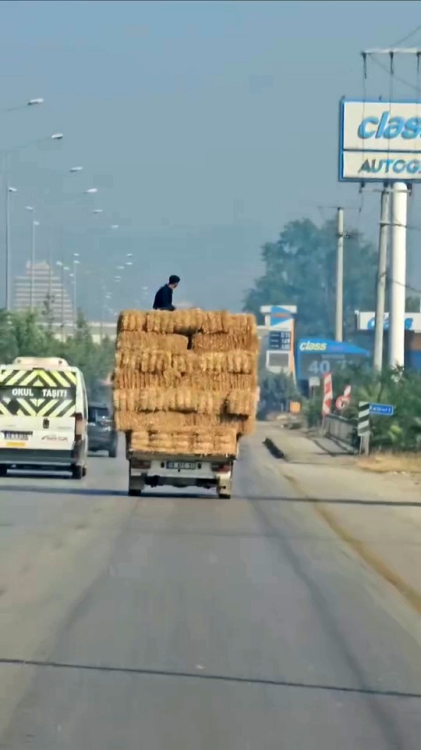 Olay, İnegöl-Bursa yolu üzerinde meydana geldi. Bir genç, traktör üzerine istiflenen saman balyalarının üzerine oturarak tehlikeli yolculuk yaptı. Saman balyalarının üzerinde seyreden genci gören diğer sürücüler, şoföre korna ile ikaz etse de sonuç alamadı. Tehlikeli yolculuk saniye saniye amatör kameraya yansıdı.