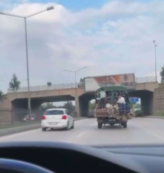 Bursa’da açık kasa kamyonete fazla malzeme yükleyerek merkez Osmangazi ilçesi İzmir Yolu Caddesi üzerinde ilerleyen sürücü, diğer araç sahiplerine korku dolu anlar yaşattı. Bir süre ilerlediği görülen kamyonetin üzerindeki ipler gevşeyince malzemeler caddeye düştü. Bir diğer görüntüde ise motosikletin yanındaki sepete oturan kişi ölüme adete davetiye çıkardı. Hiçbir güvenlik tedbiri almadan dakikalarca seyir eden sürücü, hem kendisinin hem de arkadaşının canını hiçe saydı. Başka bir görüntüde ise İnegöl’de yük dolu bir kamyonetin kasasında seyreden kişiler kilometrelerce ilerledi. Soğukkanlı kişilerin kazaya davetiye çıkardığı anlar ise herkesi şaşkına çevirdi.