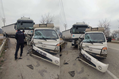 Bursa'da TIR ile kamyonetin çarpışması sonucu 1 kişi sıkışarak yaralandı.