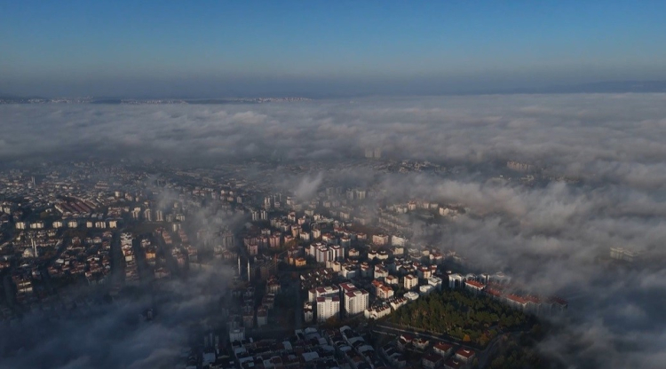 Tamamen sis bulutlarının altında kaybolan şehrin dron ile çekilen masalsı görüntüleri izleyenleri mest etti. Sis bulutlarının üzerinde seyreden dron kamerası 2500 metre yükseklikteki Uludağ ve bulutların dansını anbean görüntüledi. Sis saat 10.00’dan itibaren etkisini kaybetti.