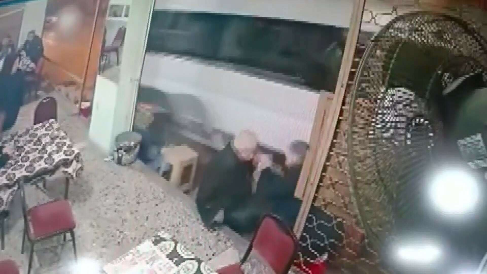Yürekleri ağza getiren o anlar ise kıraathanenin güvenlik kamerasına saniye saniye yansıdı.