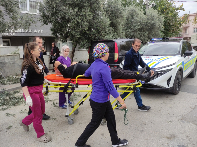 Alınan bilgiye göre; İsmail Aygünoğlu (78) kendisine ait evin önünde bulunan zeytin ağacındaki zeytinleri topladıktan sonra ağaçta budama yapmak için merdivene çıktı. Merdivenin kayması sonucu bir anda dengesini kaybedip beton zemine düşen yaşlı adam yaralandı.