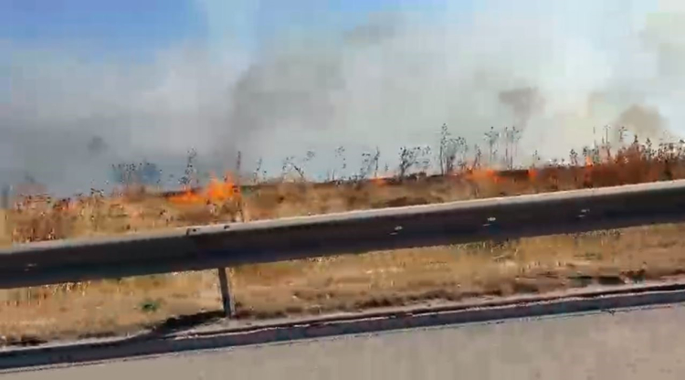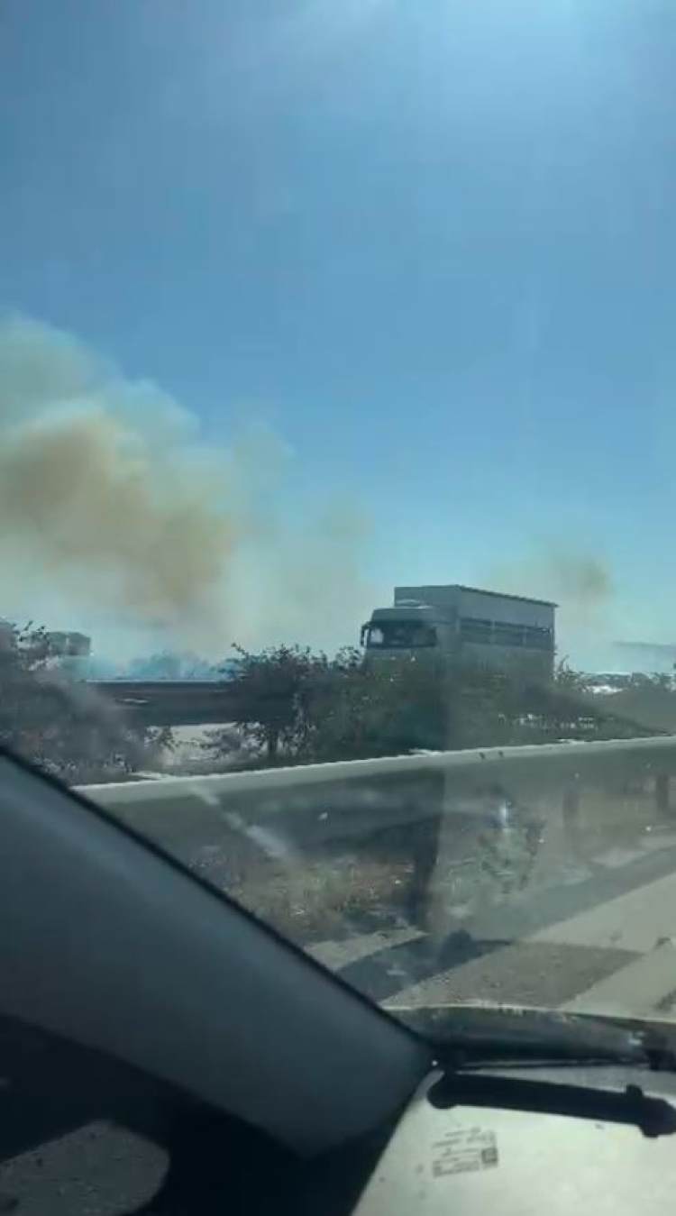 Bursa-İzmir-İstanbul otoyolu kenarındaki otluk alanda yangın başladı.